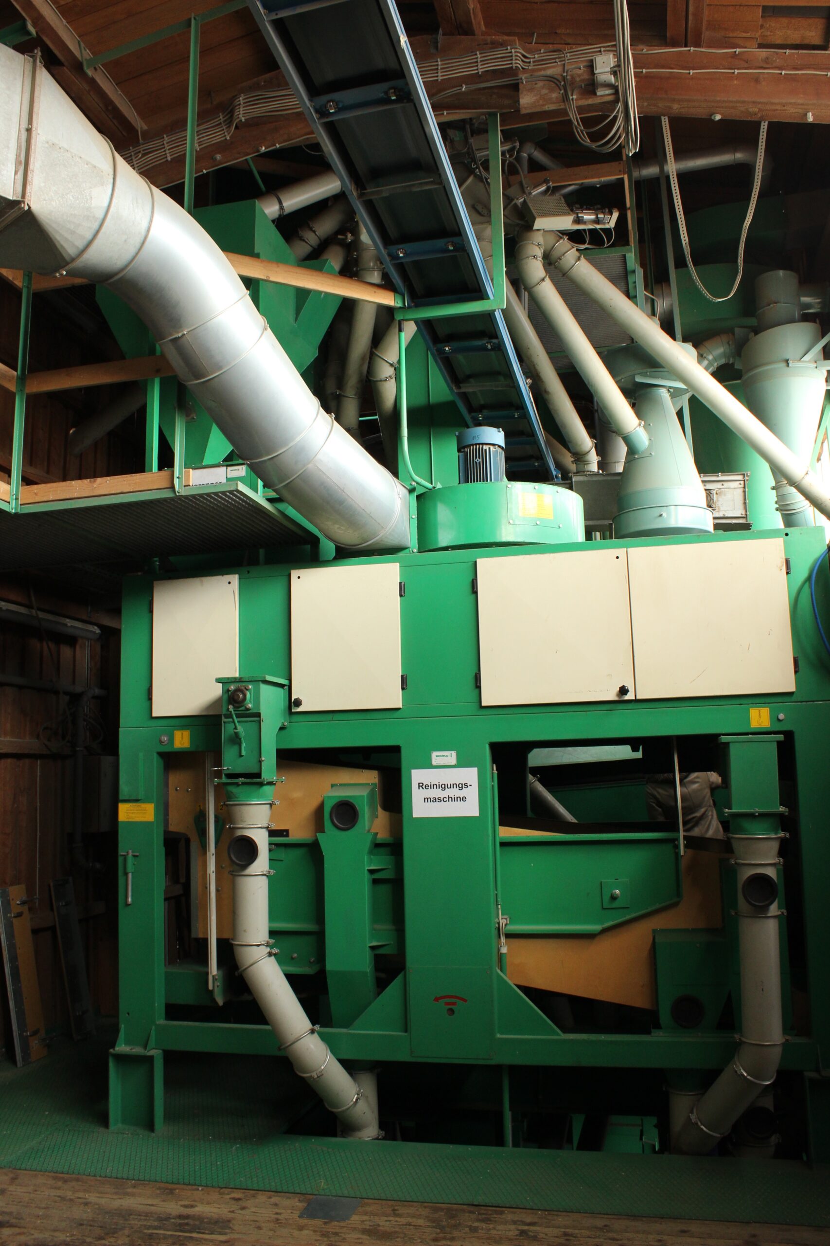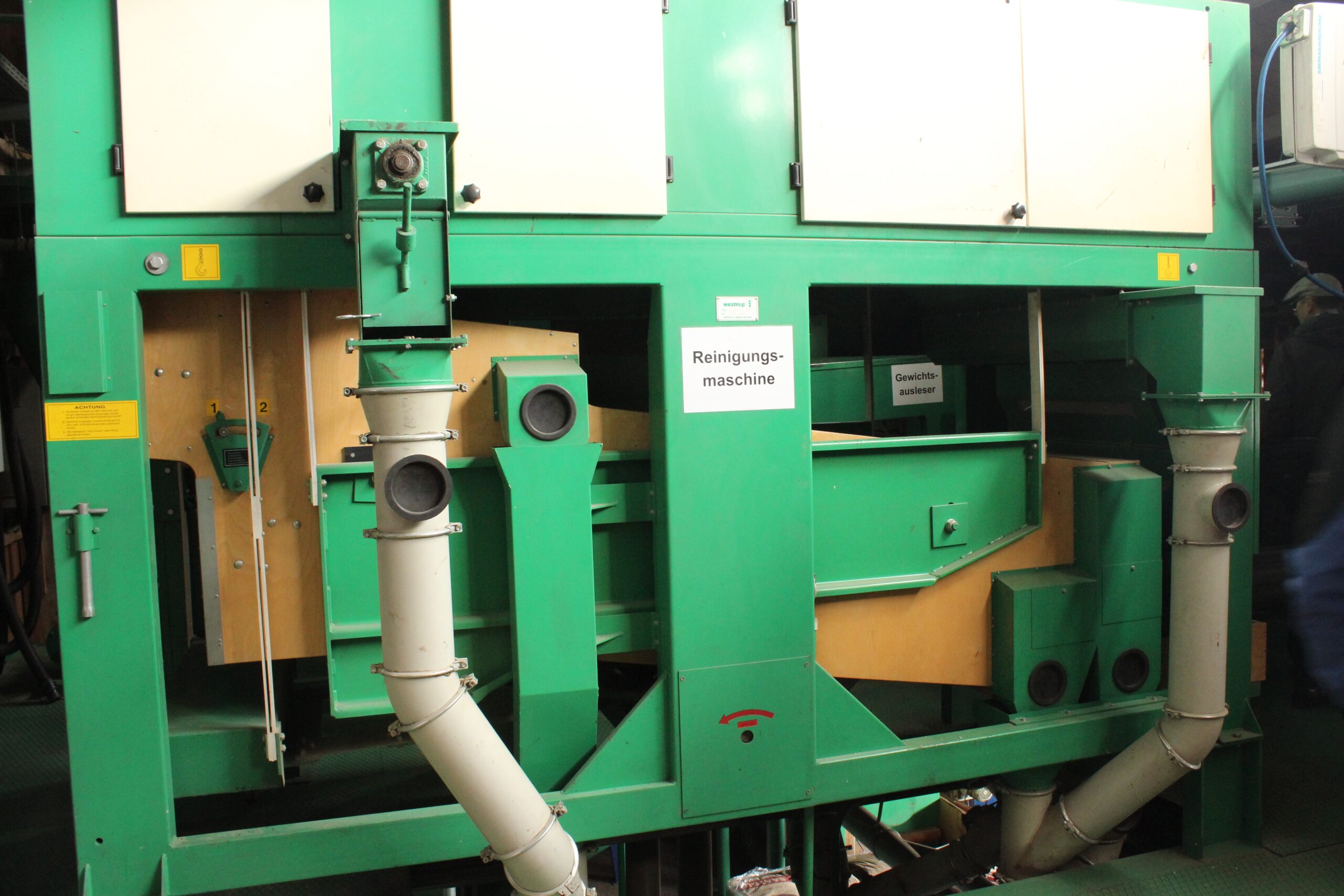 Auf der zweiten Exkursion haben wir einen Betrieb besucht, der Biosaatgut produziert. Die Saatgutproduktion im kommerziellen Maßstab verlangt einiges an Maschinen und technischem Know-How, wie man auf den Fotos gut erkennen kann. Neben den großen Aufreinigungs- und Sortiermaschinen finden sich in den Lagerhallen Unmengen an Saatgut in riesigen Bigpacks mit dem Naturland-Logo. Bei der Saatgutproduktion ist einerseits die technische Qualität entscheidend (Keimrate, Reinheit, Saatgutgesundheit), da die Ernte der Landwirte von dieser ja essentiell abhängt. Bisher spielten dagegen ökologisch gezüchtete Sorten in diesem Betrieb eine untergeordnete Rolle, da diese bisher den Anforderungen der Landwirte eher nicht gerecht werden (so der Betriebsleiter).